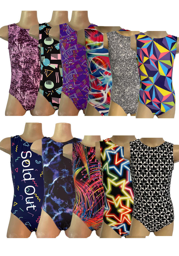 Fun printed fabrics are all soft so you can focus on being comfortable during gym practice!